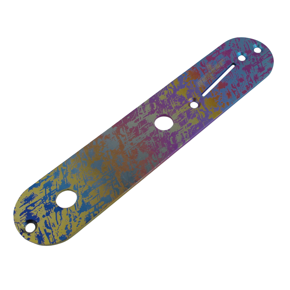 Plated titanium alloy control plate has that timeless Tele TL look and feel. Special damascus pattern, eye-catching.
